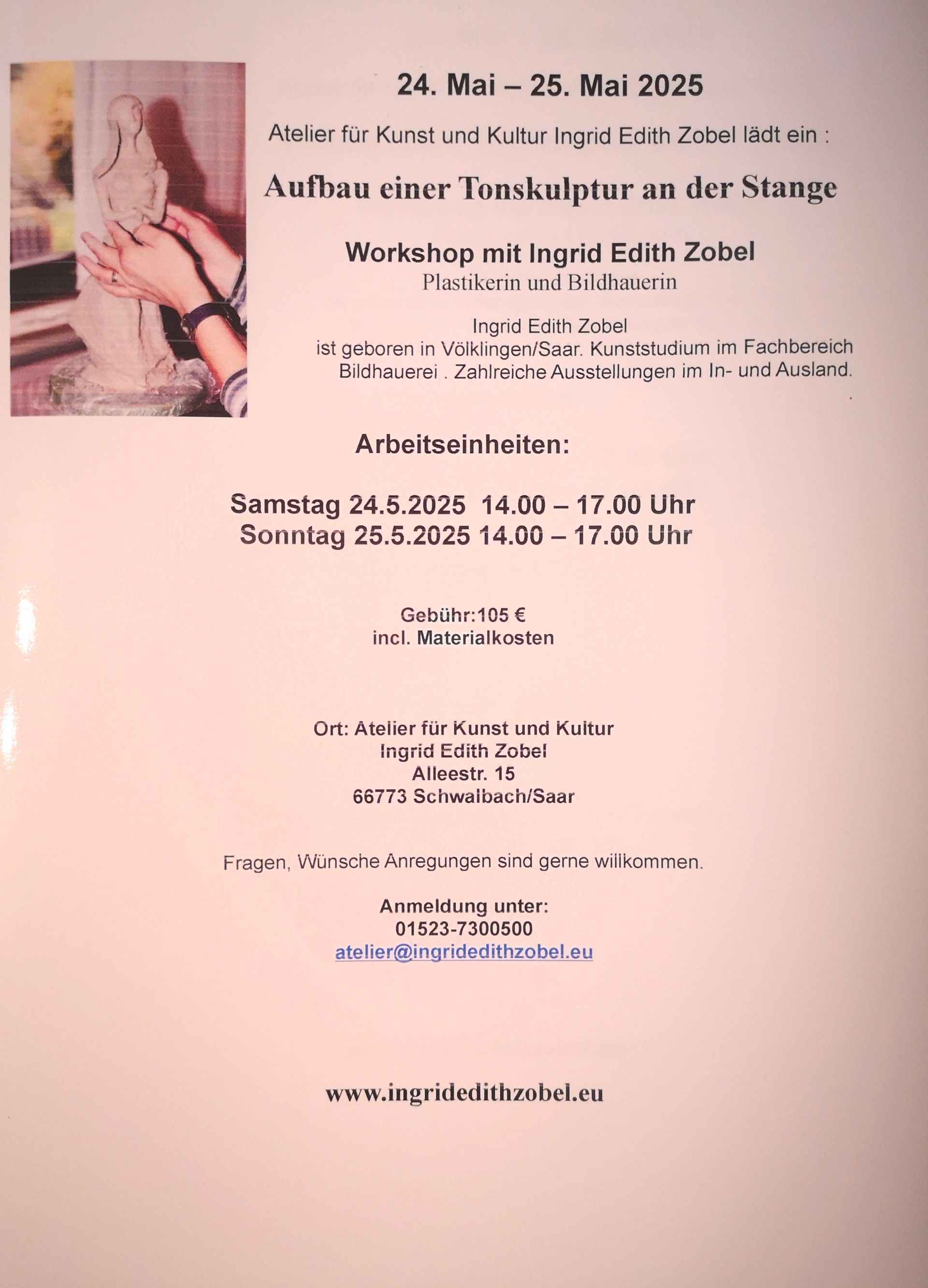 vielleicht möchtet ihr eine Kurs verschenken? Ich biete einen Workshop Plastizieren an für ein Wochenende Ende Mai: